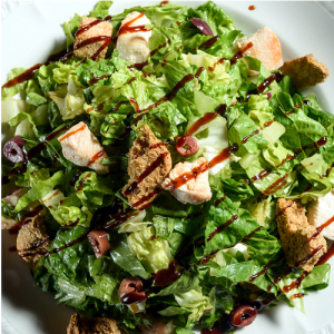 γαλλικό μαρούλι, κρουτόν, παρμεζάνα, κοτόπουλο, μπέικον και σως ceasar’s